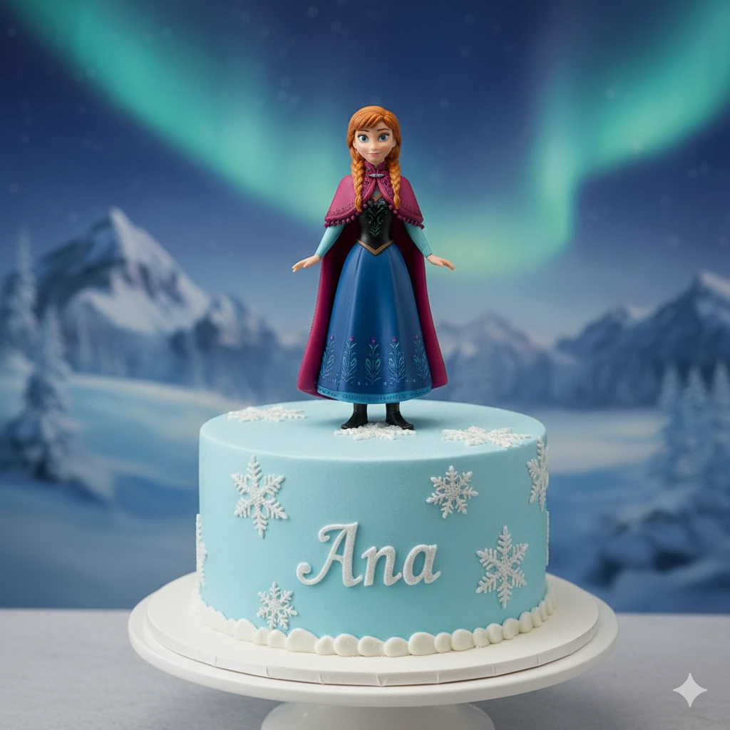 Frozen Disney - Torta 1 Piso - 16cm de Diametro - 2Kg - 13 a 15 Porciones - 2 Rellenos - Adornos Impresos en 3D
