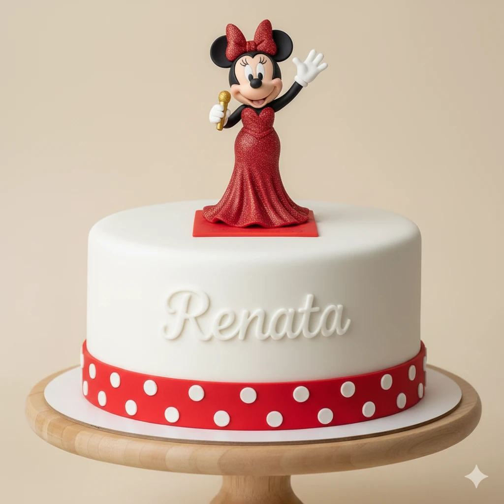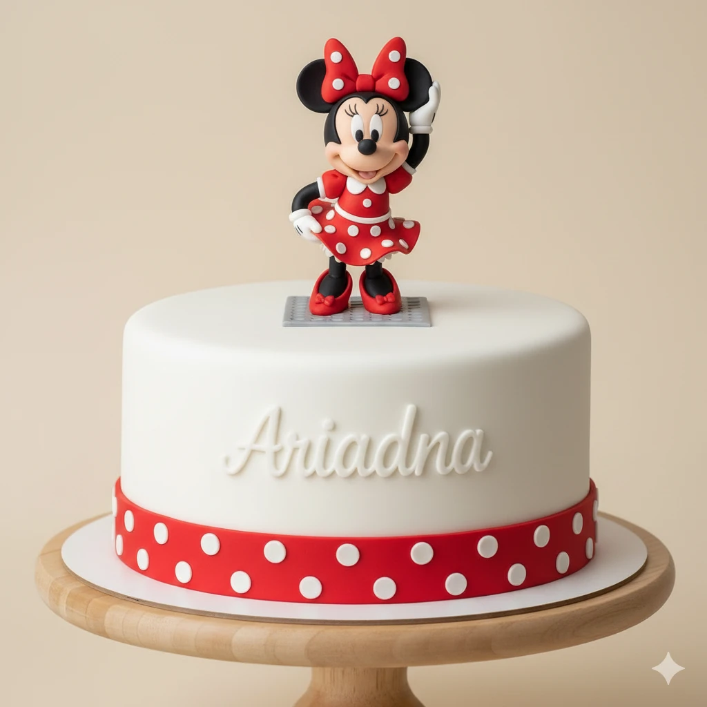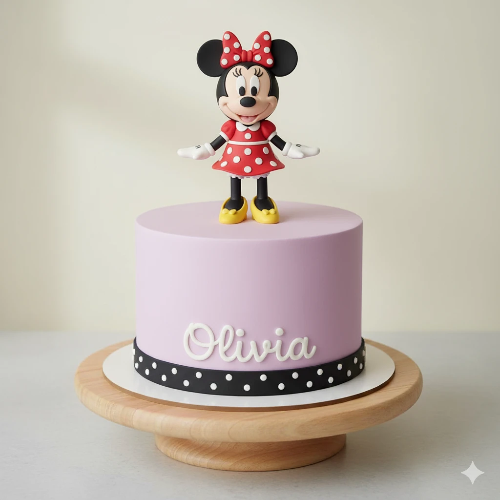 Minnie Mouse Disney - Torta 1 Piso - 16cm de Diametro - 2Kg - 13 a 15 Porciones - 2 Rellenos - Adornos Impresos en 3D